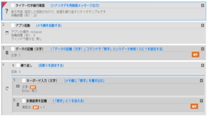 ・「計算結果を記憶」コマンドで、「数字」に1を加える