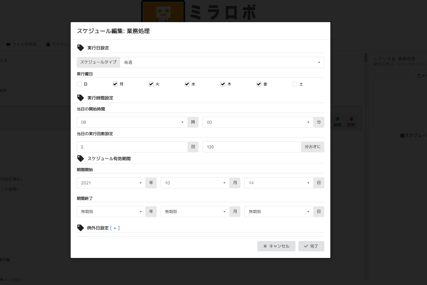 シナリオ作成時に『管理者』と『使用者』の権限を付与することが可能。どのシナリオがいつ実行されたのかログを取得することもできます。
