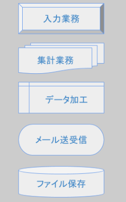 会社により、部門により、部署により、業務の内容は千差万別です。しかし、それらの業務を構成する作業という点ではどうでしょうか。多くの業務はこの図にあるような作業の組み合わせで構成されているのではないでしょうか。