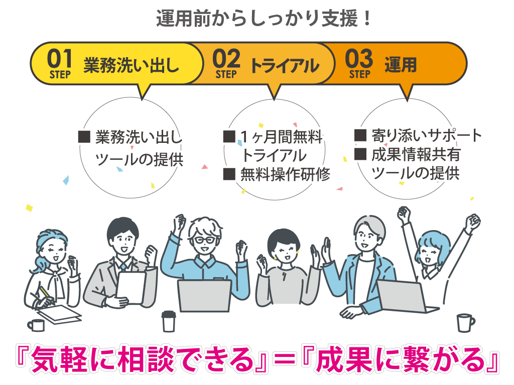 社内の皆様が自動化の目的を共有して、しっかりとミラロボを活用できる環境づくりについても、お気軽にご相談ください。